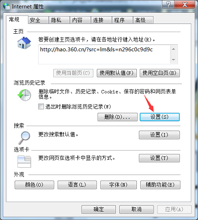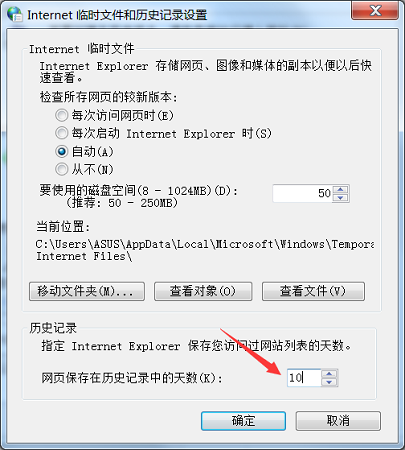 3.然后再點(diǎn)擊【設(shè)置】,在【網(wǎng)頁保存在歷史記錄中的天數(shù)】那改為10天,防止內(nèi)存滿了,最近點(diǎn)擊【確定】即可,這樣再重新打開網(wǎng)頁就完整了。