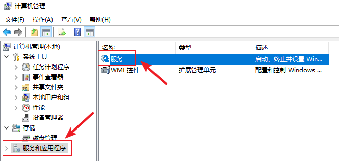2.進入計算機管理界面,在左側(cè)選擇【服務(wù)和應(yīng)用程序】,然后在右側(cè)雙擊【服務(wù)】。