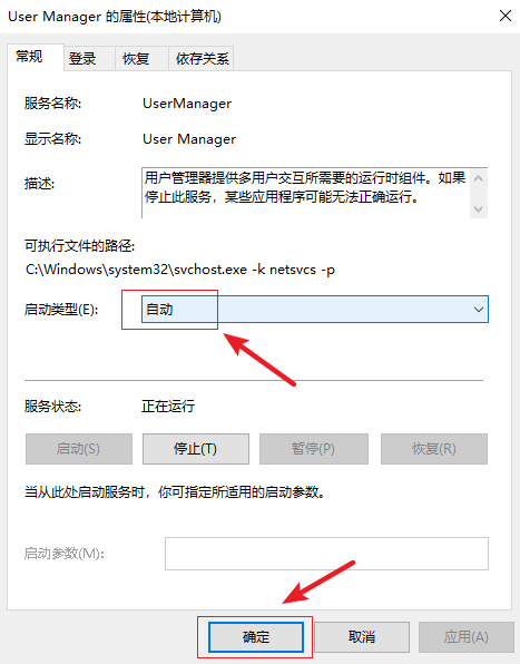 4.在彈出的界面中,將【啟動類型】改為【自動】,然后點擊【確定】按鈕即可。