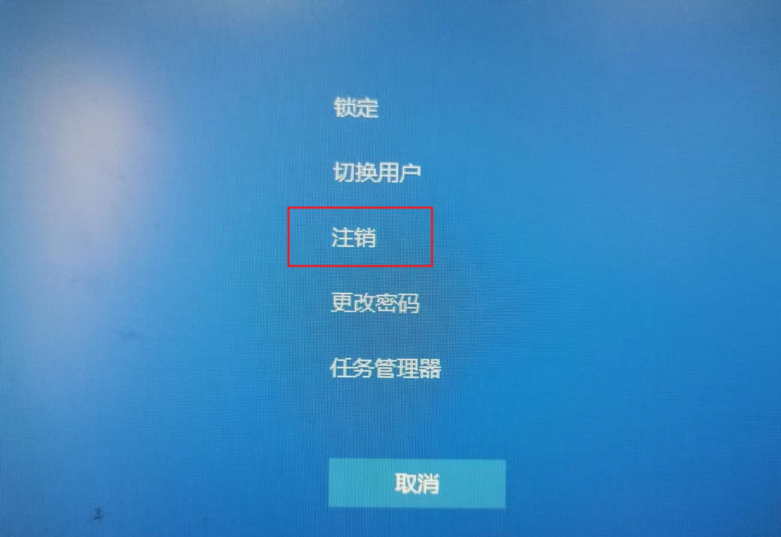 1.在鍵盤上按下【Ctrl+Alt+Del】組合鍵,然后選擇【注銷】,再重啟就可以進(jìn)入系統(tǒng)了。