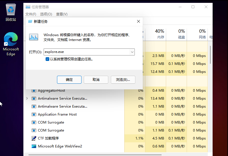 4.接著在彈出的窗口輸入【explorer.exe】,再按下回車確定就可以了。