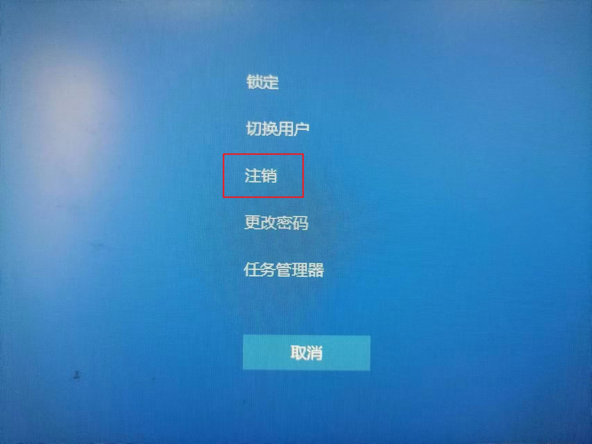 1.在鍵盤上按下【Ctrl+Alt+Del】組合鍵,選擇【注銷】,注銷完成后就可以進入系統(tǒng)了。