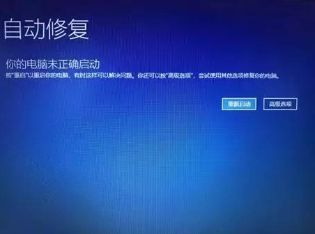 1.長按按電源按鈕開機(jī),重復(fù)步驟3次左右,系統(tǒng)會跳到自動修復(fù)界面,點擊【高級選項】。
