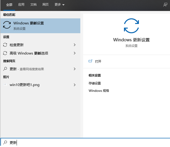 在下方的搜索框輸入【更新】,然后點擊第一個【檢查更新】。