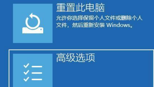 3.選擇【高級(jí)選擇】,如果進(jìn)不去,就選擇【重置此電腦】。