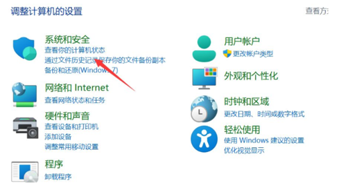 1.打開win11控制面板,選擇“系統(tǒng)與安全”選項。