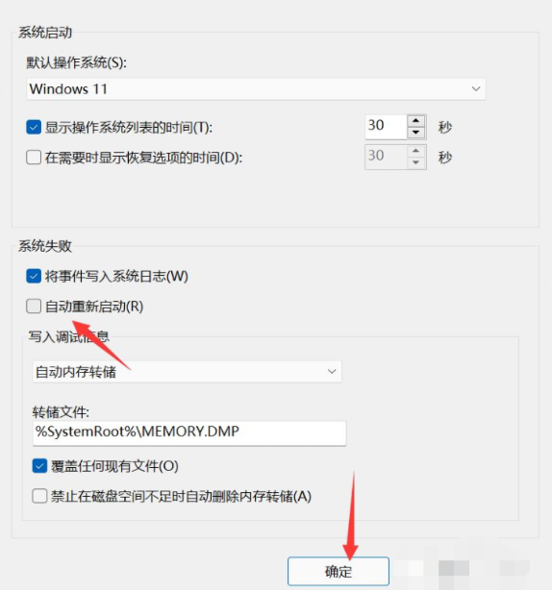 5.接著取消勾選“自動重新啟動”,最后點擊“確定”即可。