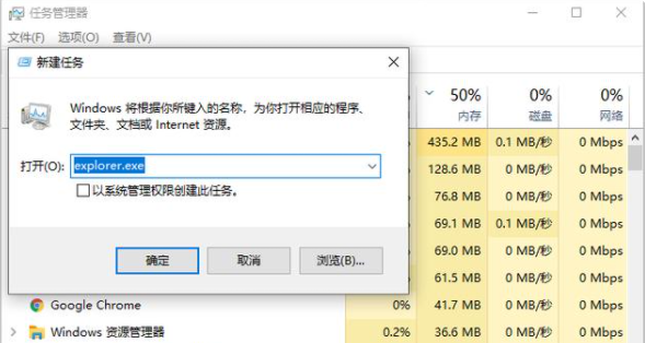 3.接著在彈出的窗口輸入“explorer.exe”,點擊“確定”即可。