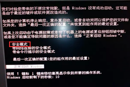 1.重啟電腦,按F8跳轉(zhuǎn)到高級啟動頁面,選擇“安全模式”。