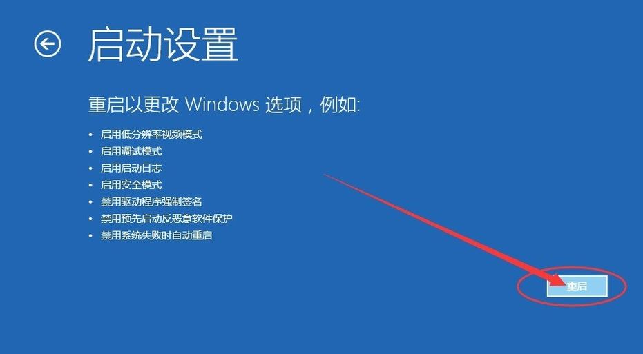 3.進(jìn)入“啟動(dòng)設(shè)置”后,點(diǎn)擊右下角的“重啟”。