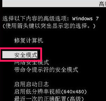 2.使用鍵盤方向鍵選擇“安全模式”,并按回車進入。