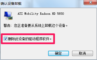 5.勾選“刪除此設(shè)備的驅(qū)動程序軟件”,按“確定”按鈕。等顯示適配器下的驅(qū)動卸載完成后,重啟電腦就恢復(fù)正常了。