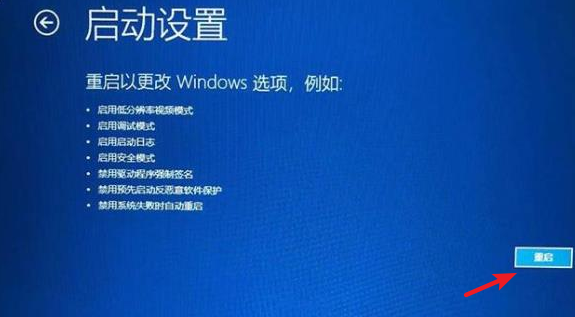 3.進(jìn)入“啟動(dòng)設(shè)置”頁(yè)面后,點(diǎn)擊右下角的“重啟”。