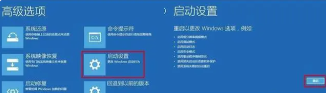 2.點(diǎn)擊“啟動設(shè)置”,并按最右邊的“重啟”按鈕。