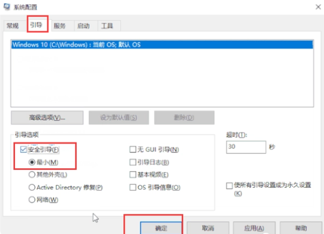 2.進(jìn)入系統(tǒng)配置后,切換至“引導(dǎo)”菜單,勾選“安全引導(dǎo)”,點(diǎn)擊“確定”。之后重啟計(jì)算機(jī)即可。