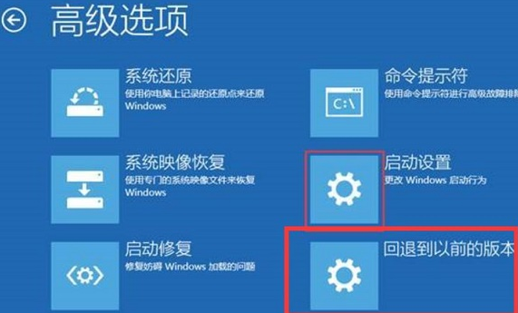 3.在高級選項頁面中選擇“回退到以前的版本”即可。