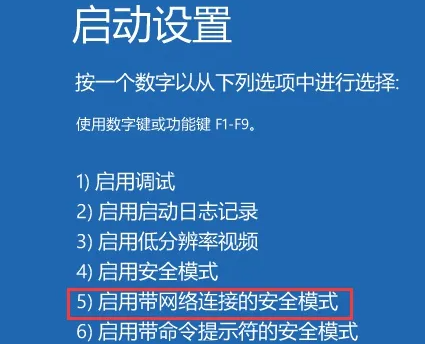 4.進(jìn)入后,按F5選擇“啟用帶網(wǎng)絡(luò)連接的安全模式”。