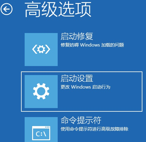 3.進(jìn)入“高級選項(xiàng)”頁面后,點(diǎn)擊第二項(xiàng)“啟動設(shè)置”。