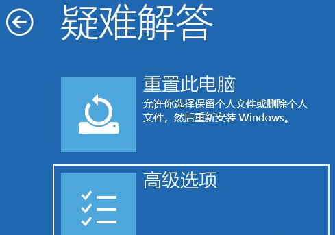 2.進(jìn)入“疑難解答”頁面后,點(diǎn)擊選擇“高級選項(xiàng)”。