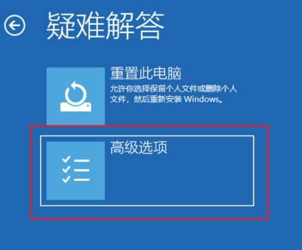 3.進入“選擇一個選項”界面,依次點擊“疑難解答”-“高級選項”。