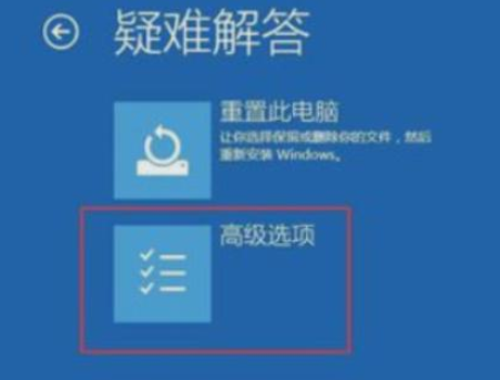 1.強(qiáng)制重啟電腦三次后,系統(tǒng)進(jìn)入恢復(fù)界面,進(jìn)入后依次點擊“疑難解答”-“高級選項”。