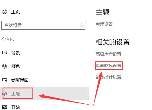 2.選擇“主題”,并找到“桌面圖標(biāo)設(shè)置”,點(diǎn)擊進(jìn)入。