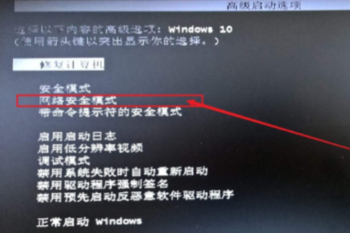 1.強(qiáng)制關(guān)機(jī)后再重新開機(jī),進(jìn)入系統(tǒng)后,按F8進(jìn)入“高級啟動選項”,選擇“網(wǎng)絡(luò)安全模式”,并回車進(jìn)入。