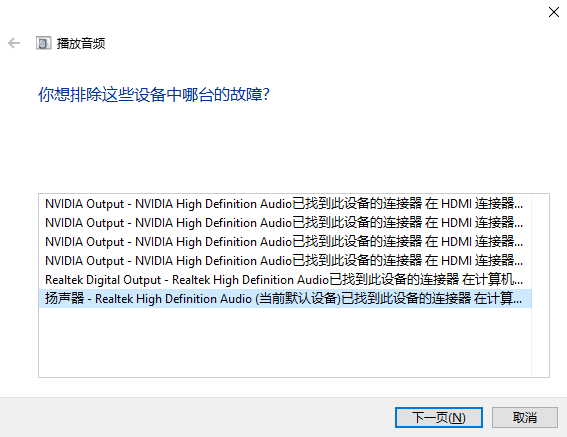 2.選擇當(dāng)前的聲音設(shè)備,然后電腦就會(huì)自動(dòng)檢測(cè)聲音問題并給出相應(yīng)的解決方案,根據(jù)電腦提示進(jìn)行修復(fù)即可。