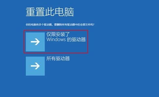 4.選擇“僅限windows”驅(qū)動(dòng)器,之后便開始重置計(jì)算機(jī),耐心等待完成再重啟電腦即可。