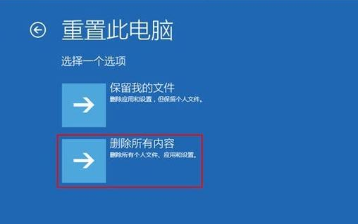 3.因?yàn)樵嫉膚in10系統(tǒng)被破壞了,因此需要選擇“刪除所有內(nèi)容”。
