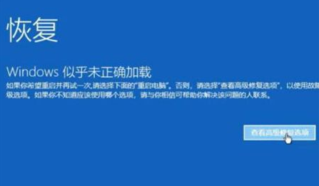 1.強(qiáng)制關(guān)機(jī),之后系統(tǒng)會(huì)進(jìn)入恢復(fù)提示,點(diǎn)擊“查看高級(jí)修復(fù)選項(xiàng)”。
