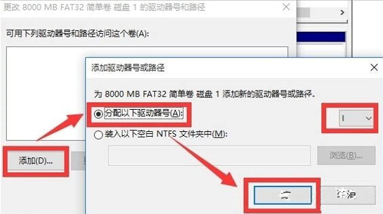 2.在彈出的窗口,將當前可移動磁盤盤符修改成位于本地磁盤最后的盤符,然后點擊“確定”即可。