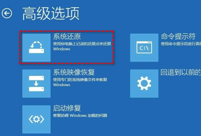 強制重啟電腦多次,直到出現(xiàn)高級選項頁面,依次點擊進入“疑難解答”頁面后,點擊“高級選項”-“系統(tǒng)還原”即可。