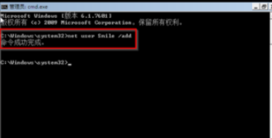 2.按下“win+r”打開運(yùn)行程序,并輸入cmd打開命令提示符,輸入命令“net user smile /add”并回車執(zhí)行。待命令執(zhí)行成功后,再次重啟電腦,即可正常進(jìn)入系統(tǒng)。