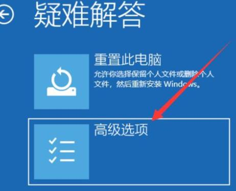 1.強(qiáng)制開(kāi)關(guān)機(jī),重復(fù)三次,狂按F8進(jìn)入自動(dòng)修復(fù)頁(yè)面,選擇“疑難解答”-“高級(jí)選項(xiàng)”。