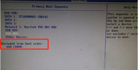 3.此時(shí)界面中出現(xiàn)“Excluded from boot order”選項(xiàng),即未添加的啟動(dòng)項(xiàng)。直接使用“X”將其移上去。