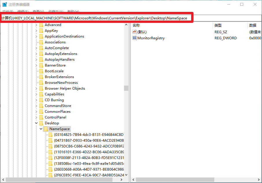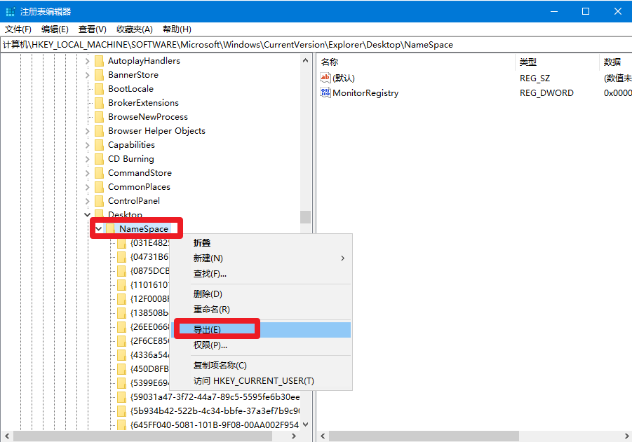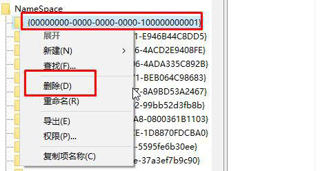 7.打開注冊表并展開“NameSpace”選項,找到該編號的選項鼠標(biāo)右鍵進行“刪除”。桌面的IE圖標(biāo)已經(jīng)能刪除了。