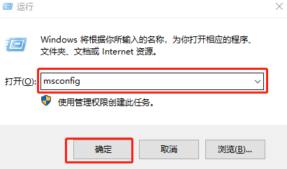 1.調(diào)出win10系統(tǒng)中的運(yùn)行窗口,開(kāi)始輸入msconfig命令后回車。