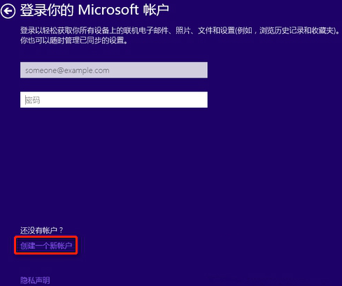 1.等電腦彈出登錄賬戶界面時(shí),點(diǎn)擊創(chuàng)建一個(gè)新賬戶進(jìn)入操作。