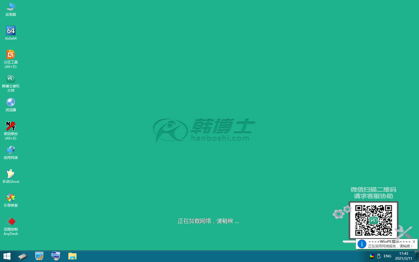 6.韓博士模擬出啟動(dòng)頁面,出現(xiàn)“韓博士U盤系統(tǒng)維護(hù)工具“,U盤啟動(dòng)盤制作成功,這時(shí)可關(guān)閉測試頁面。