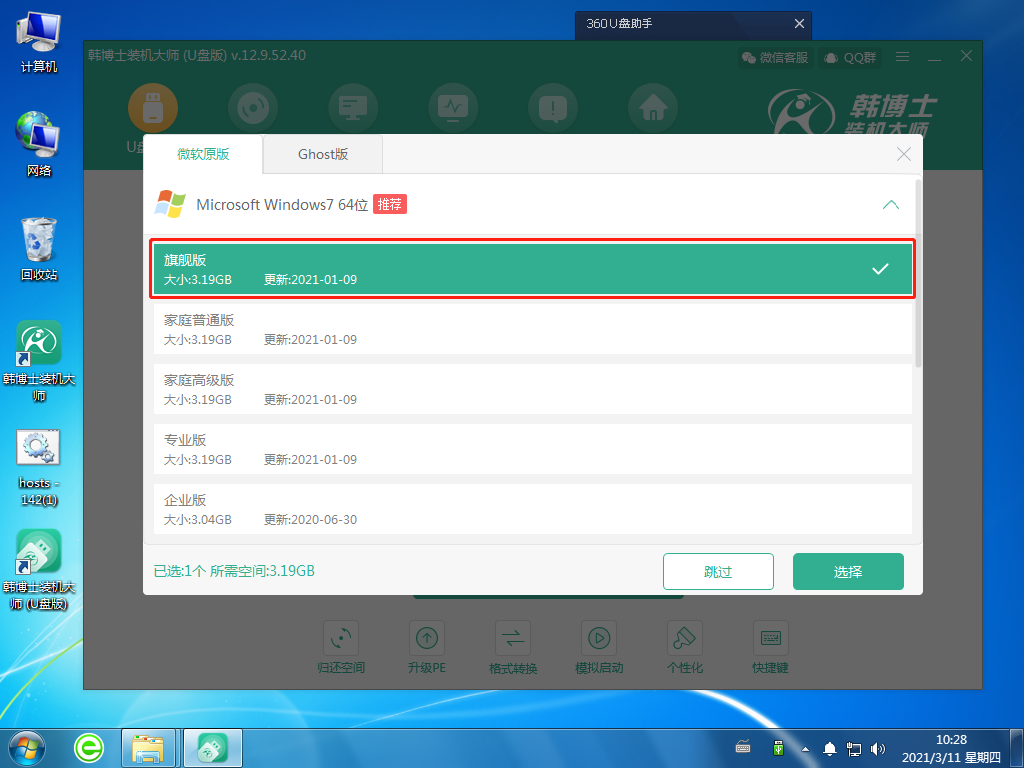 3. 在韓博士提供的系統(tǒng)中選擇合適的win7系統(tǒng)