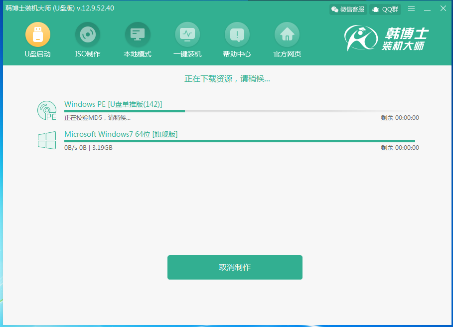 4.選擇好系統(tǒng)后,點(diǎn)擊“開始制作”,需耐心等待一段時(shí)間