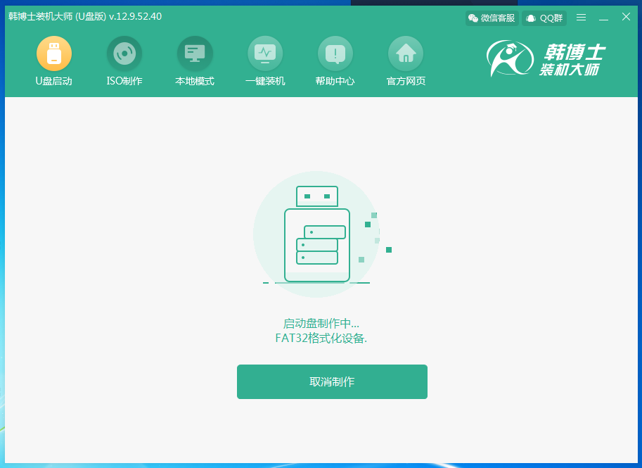 1.在桌面打開韓博士裝機(jī)大師,進(jìn)入以下界面后,點(diǎn)擊“啟動U盤”