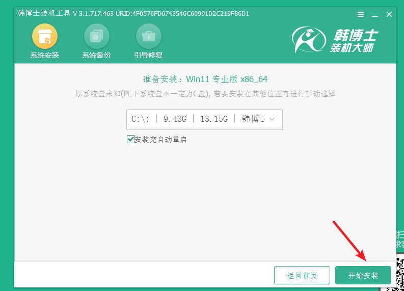 以上就是具體的win11閃屏怎么重裝系統(tǒng)的詳細(xì)方法和步驟了,如果你也遇到了win11開(kāi)機(jī)閃屏的問(wèn)題,可以參考上面的教程給電腦重裝win11系統(tǒng)。如果在重裝的過(guò)程遇到問(wèn)題的話,可以咨詢官網(wǎng)的技術(shù)客服,會(huì)耐心為你解答!韓博士支持一鍵云U盤啟動(dòng)制作,安全好用!