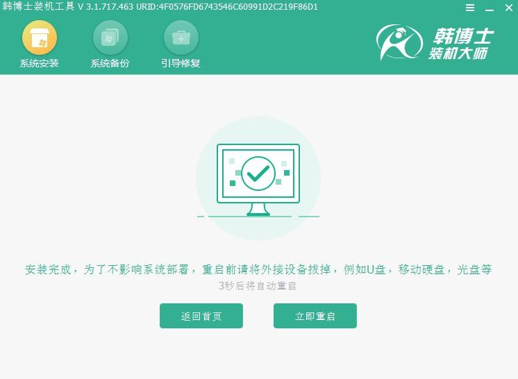 5.安裝完成,拔出U盤,然后點(diǎn)擊“立即重啟”。