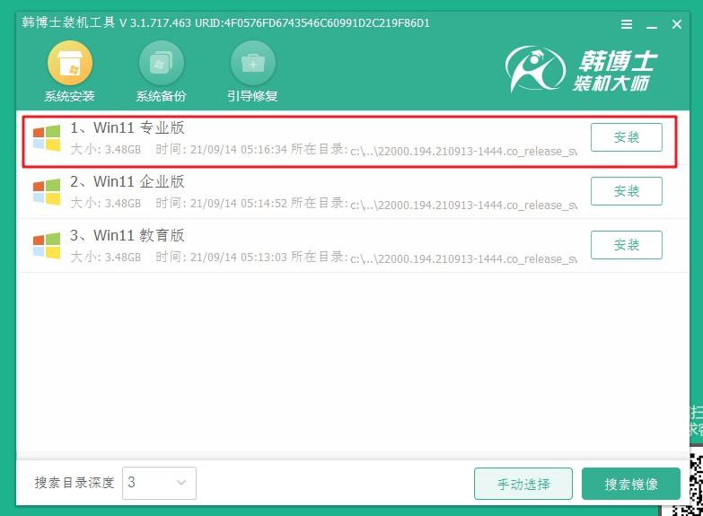 2.進(jìn)入后,系統(tǒng)會自動打開搜索系統(tǒng)鏡像,找到鏡像,點(diǎn)擊“安裝”。